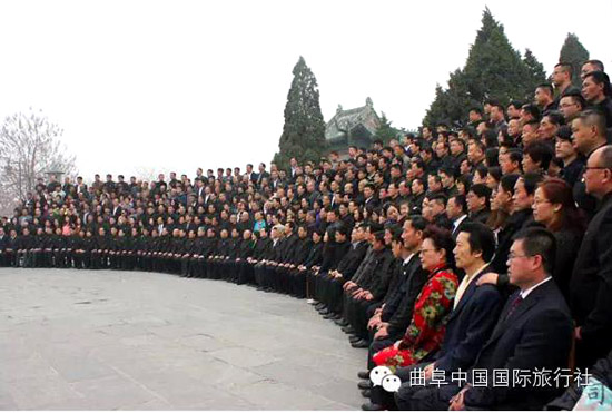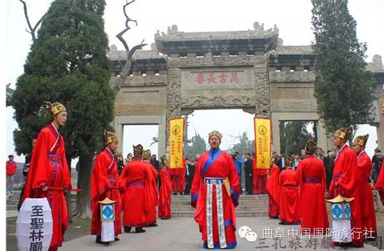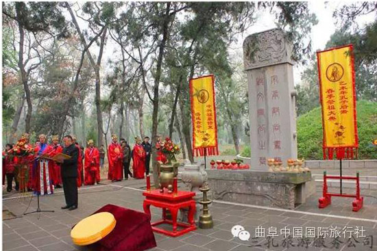 按照曲阜當地的風俗,在每年的清明節(jié),孔子后裔都要到孔氏的家族墓地孔林掃墓,祭拜先祖。浩浩蕩蕩的掃墓隊伍,就是一幅幅活生生的民俗畫,最生動地體現著中華民族古老的文化。清明節(jié)孔子后裔祭祖釋奠儀式,是三孔旅游服務公司根據《曲阜縣志》、《圣門禮志》、《闕里志》等有關記載,以歷史文化為根基,以對傳統(tǒng)清明節(jié)祭祀孔子相關儀式的生動再現為手段,推出的盛大祭祀活動,從而把印在塵封古籍中的古老風俗,刻在千年石碑上的儒家文化,生動地展現在人們的面前。
