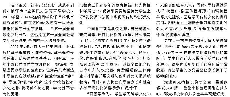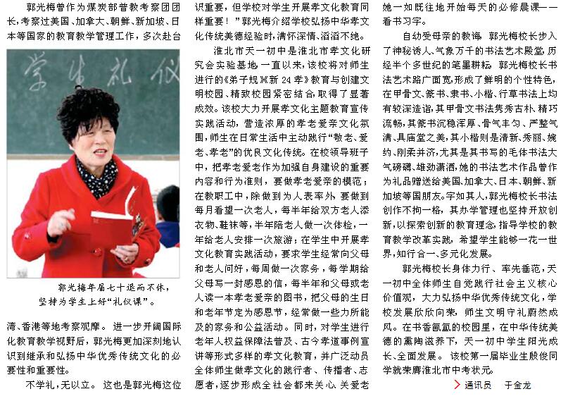 媒體報(bào)道:天一初中校長(zhǎng)郭光梅崇“禮”樹(shù)人立校魂 寄身于翰墨 醉心于教育