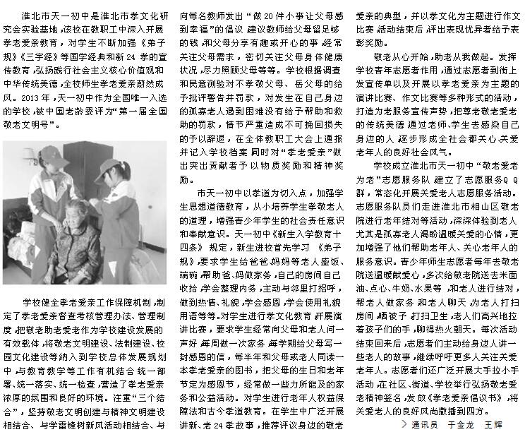 轉(zhuǎn)淮北晨刊:天一初中孝老愛親彰顯文明風(fēng)采