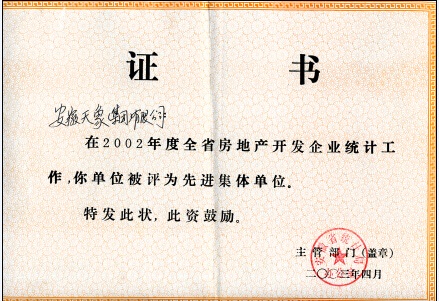 2003年安徽省房地產(chǎn)先進(jìn)集體證書(shū)