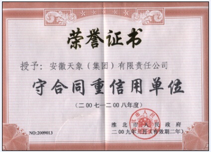 2007-2008年淮北市守合同重信用單位榮譽證書