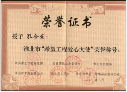 2007年孔令發(fā)董事長獲評希望工程愛心大使